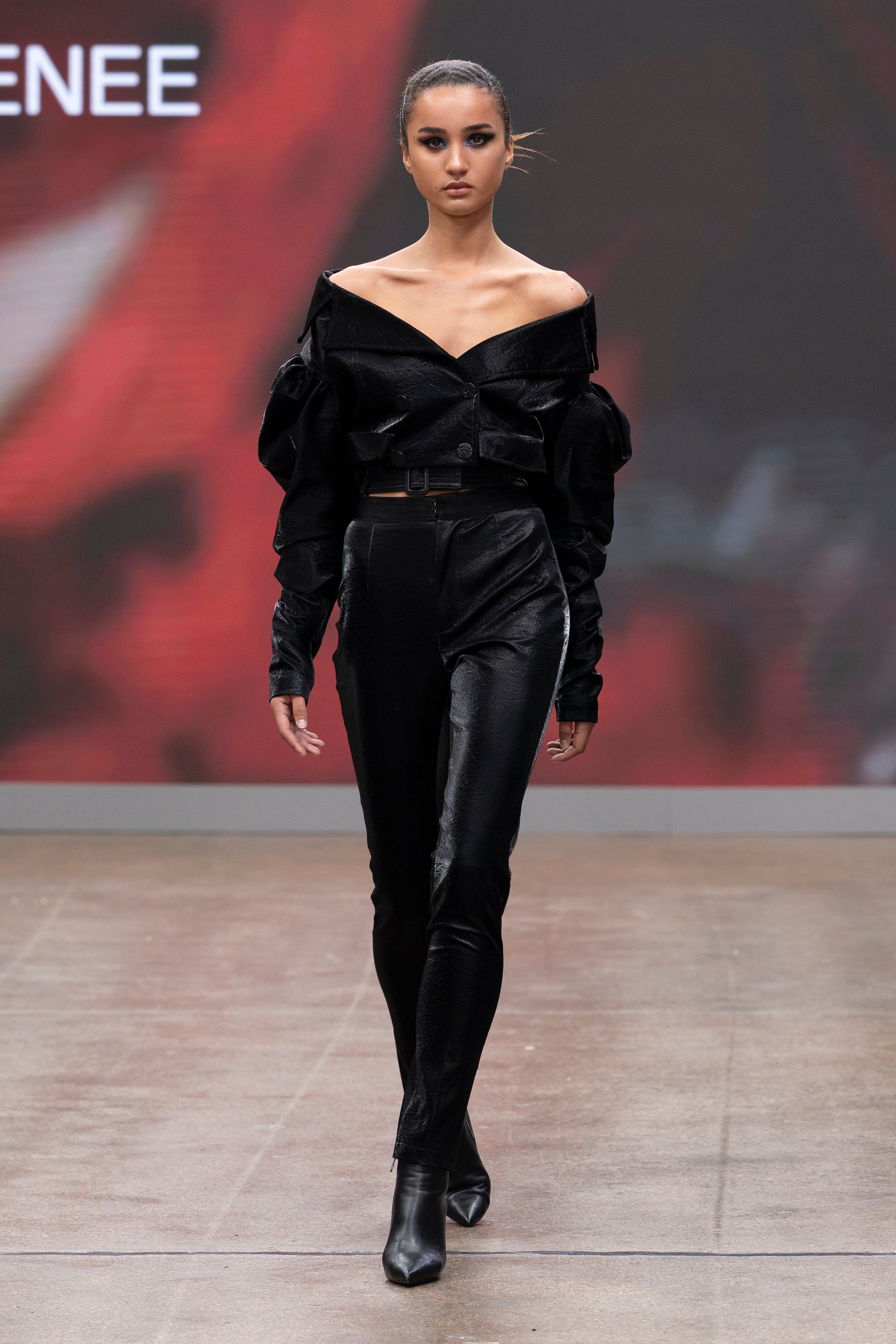 - Slim tapered trousers for elongated silhouette